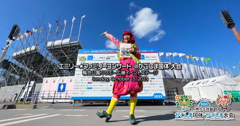 かごしま国体・大会開催中、鴨池公園ぐりぶー広場イベントステージにエミリー☆ファミリーコンサートが出演します❣❣